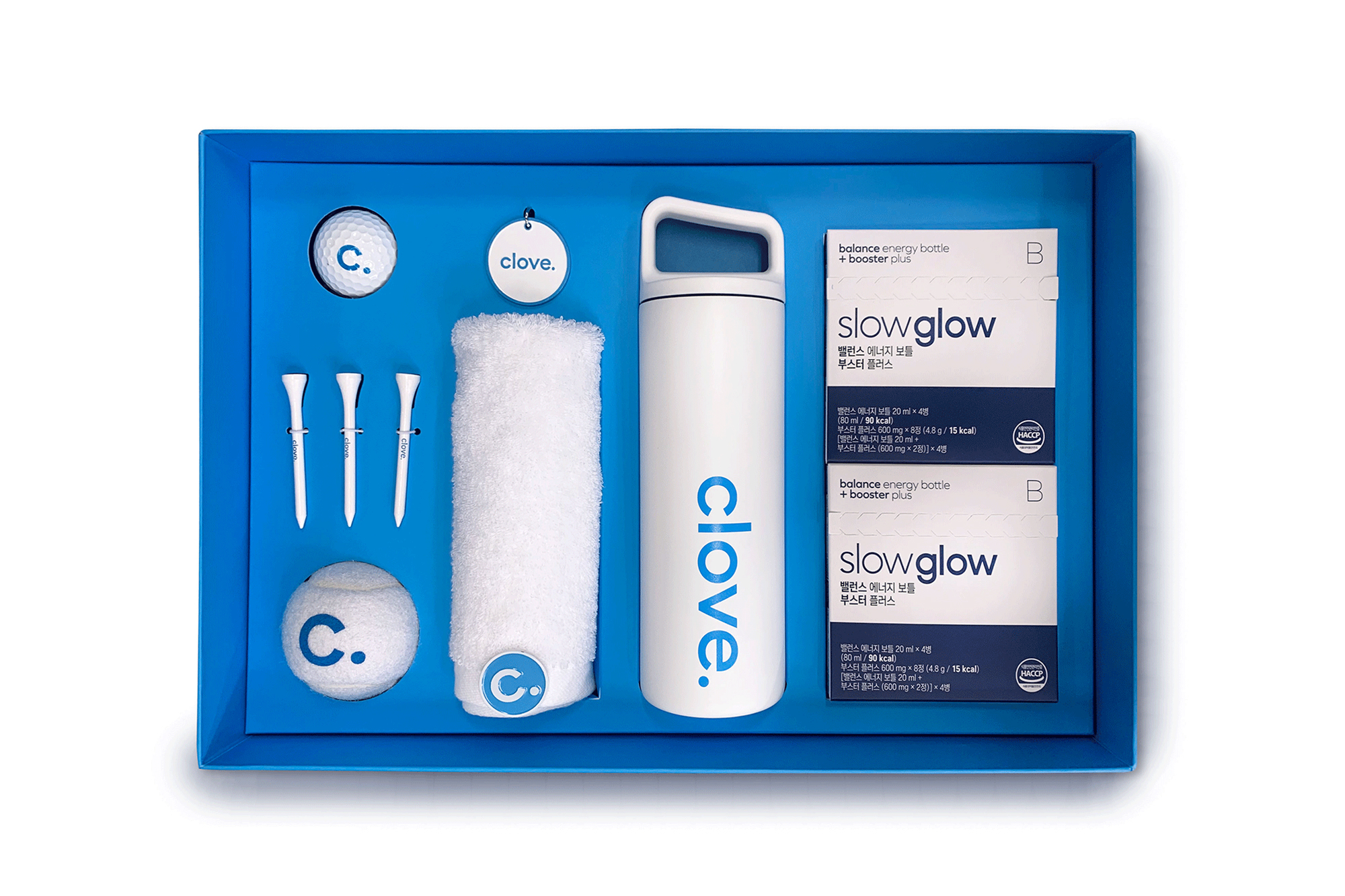 Overview 클래시한 감성의 라이프웨어 클로브에서 VIP 기프트 키트를 제작했습니다. 클로브의 기프트 키트는 클로브의 감성을 고스란히 담아낸 세련된 디자인이 특징입니다. 테니스공, 골프공, 핸드타월, 키링, 볼마커, 골프 티, 텀블러 등 다양한 구성품은 클로브의 브랜드 컬러인 블루 색상과 클로브의 로고를 활용해 고급스러운 느낌을 자아내며, 클로브의 브랜드 이미지를 강조합니다.